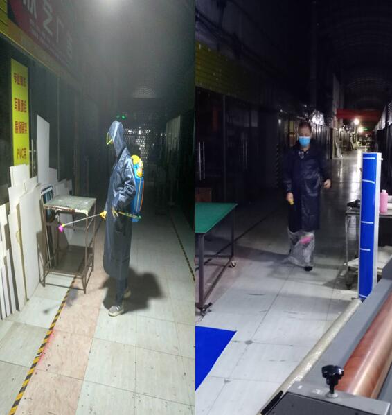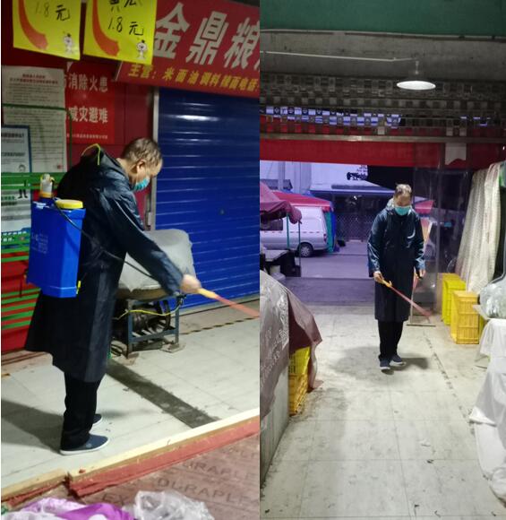 我們市場的消毒工作還在繼續(xù)進行,每天早晚2次的消殺,加強市場內(nèi)環(huán)境衛(wèi)生的管理,做好攤位和經(jīng)營場所的衛(wèi)生,增加通道、廁所等公共區(qū)域的清掃保潔頻次,我們的保安人員從來沒有放過市場內(nèi)的每一個角落,并時刻提醒我的商戶和顧客絕不能掉以輕心,不能麻痹大意。