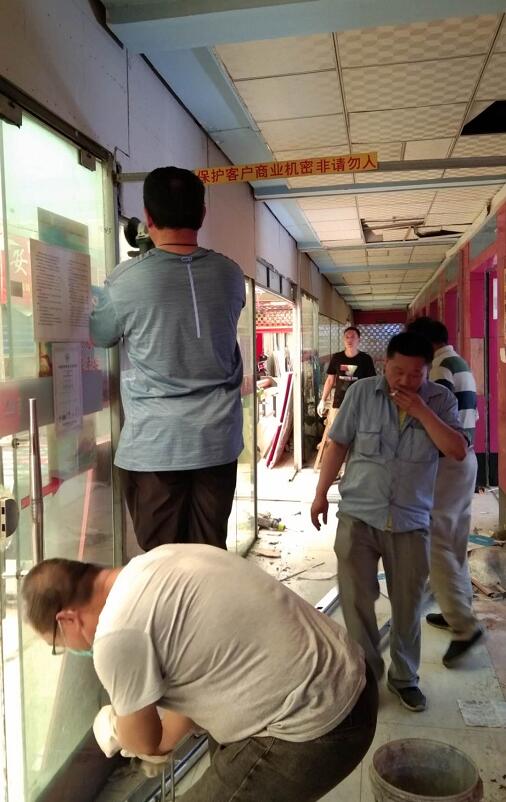 汗水濕透了他們的衣衫,但是為了商戶盡早營業(yè),他們無怨無悔地付出著,沒有一人有一句抱怨。有的都是全心的付出,為創(chuàng)造更加清潔、舒適、和諧的社會環(huán)境做出更大貢獻。