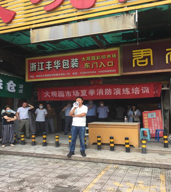 夏季高溫,是火災(zāi)高發(fā)季節(jié),消防安全工作更加重要,為進(jìn)一步加強(qiáng)市場消防安全管理工作,增強(qiáng)員工及市場商戶消防安全意識,提高火災(zāi)自救、應(yīng)急處置和緊急逃生能力。2020年6月29日,西安大觀園彩印標(biāo)牌市場有限公司組織進(jìn)行了消防逃生及滅火演練活動(dòng)。