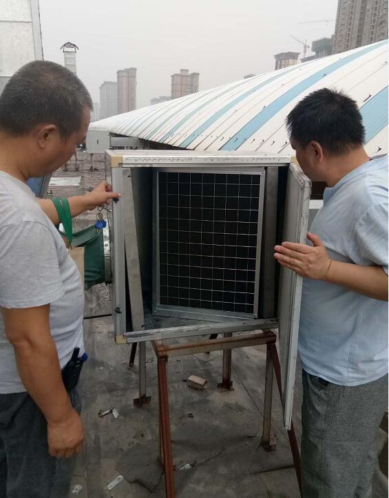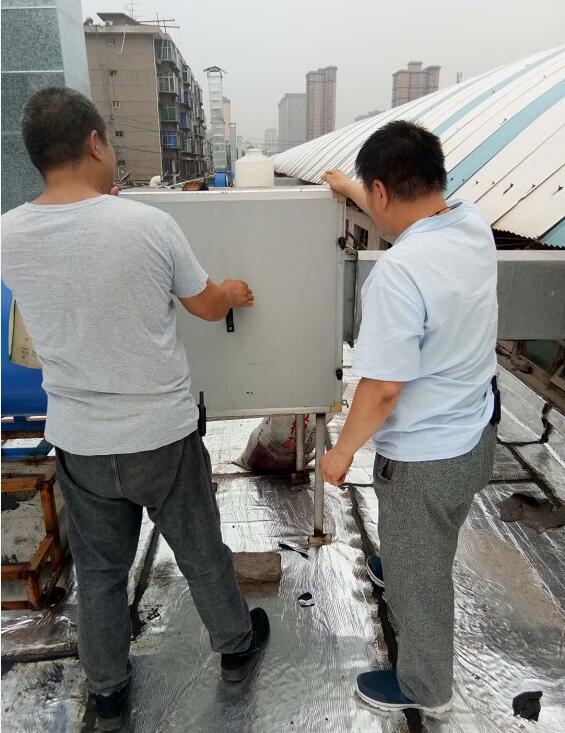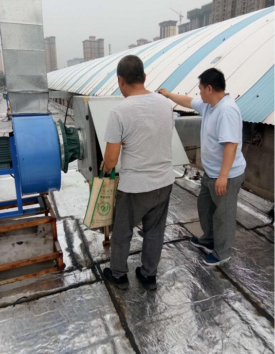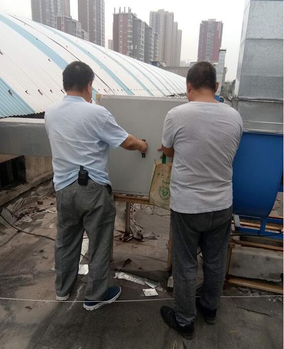 我們工作人員也是準(zhǔn)備好了一切,辦公室準(zhǔn)備好了需要的資料,物業(yè)人員頂著大太陽在樓頂檢查著所有的環(huán)保設(shè)備線路、風(fēng)機(jī)、活性炭等。