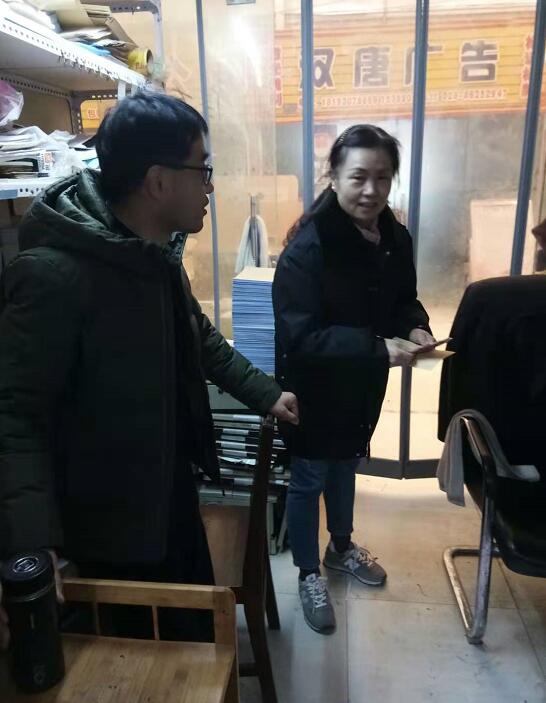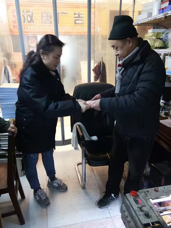 12月16日下午大觀園市場(chǎng)辦的查主管和辦公室的孫師來到了南排1115號(hào)的張平文的店鋪,其目的是代表市場(chǎng)送去了一份愛心。
