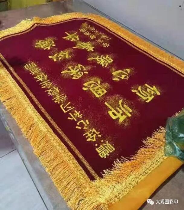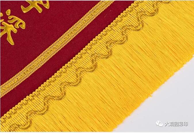 大觀園彩印市場的錦旗制作廠家,我們是獨一家,因為我們是一次成型,不做二手,所以我們優(yōu)秀,我們敢說我們是專業(yè)的,我們代表標(biāo)準(zhǔn)。