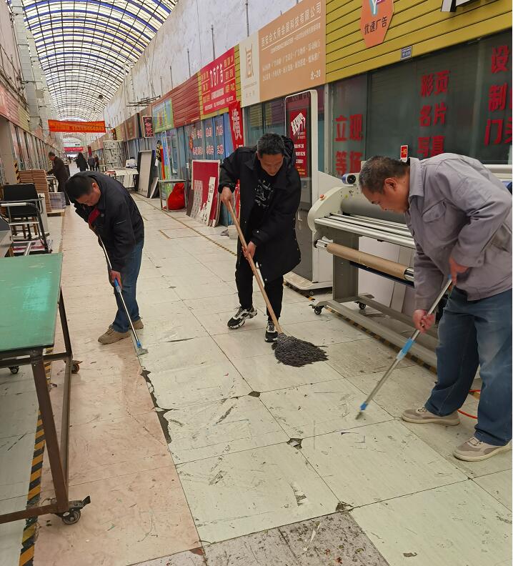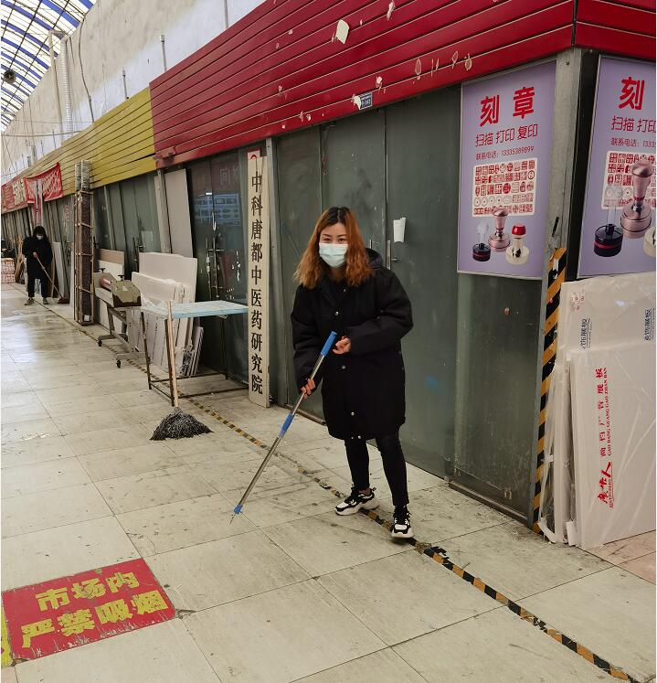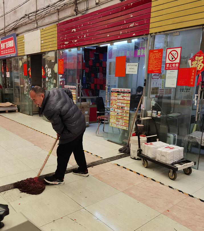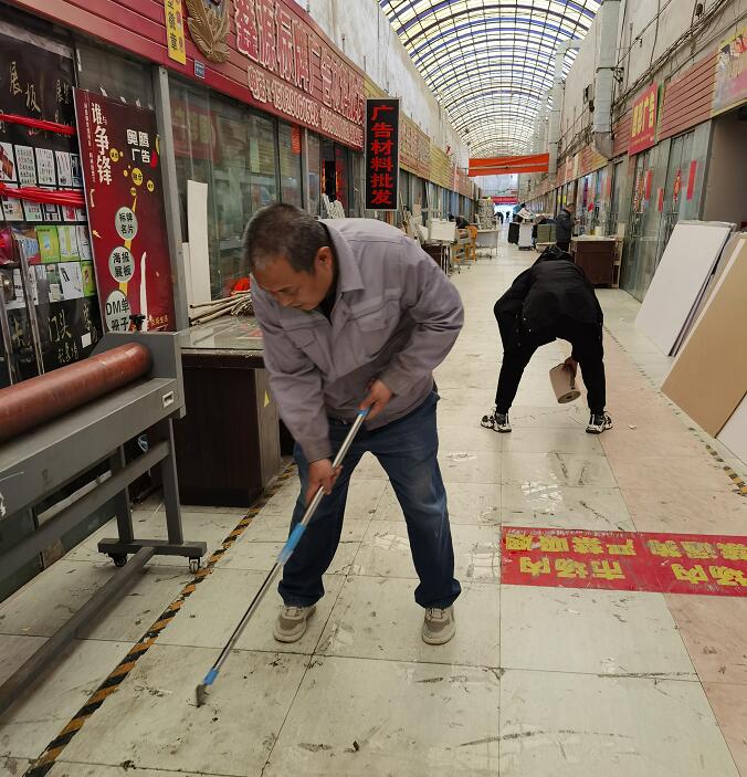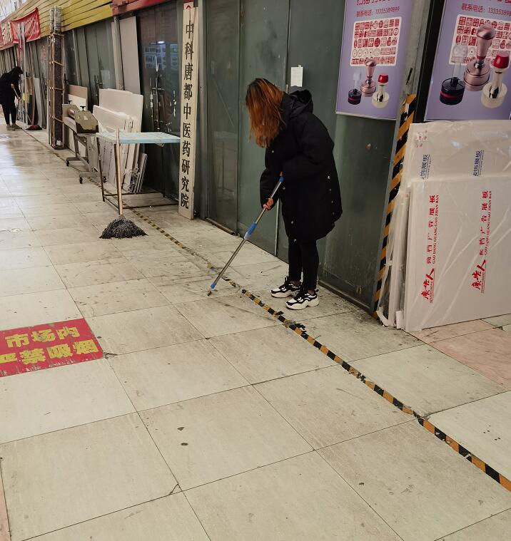 所以大觀園市場辦全體工作人員在今天全力清掃著地面的衛(wèi)生,部分熱心的商戶們也加入了大掃除的戰(zhàn)斗,大家同心協(xié)力,沒有絲毫的抱怨,都全身心地為商戶們服務(wù)著,也為市場的整潔增添著光彩,有好多商戶們也自覺地清掃著門前的衛(wèi)生,一片溫馨的場景,大家都從心里希望市場道路更干凈,環(huán)境更優(yōu)雅。
