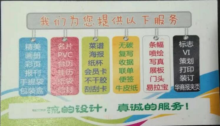 “真心真誠(chéng)為客戶服務(wù),全心全力讓客戶滿意”是西川印務(wù)的服務(wù)宗旨,服務(wù)種類繁多,畫冊(cè)、名片、海報(bào)、噴繪、寫真、門頭、展板等等可謂齊全!