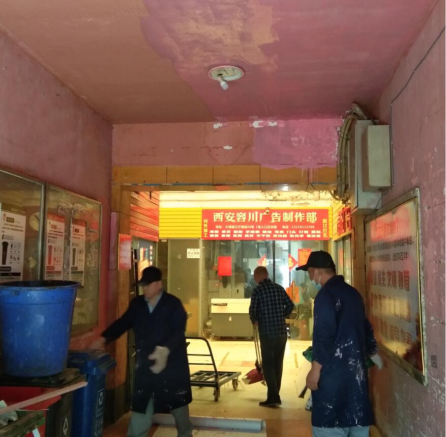 節(jié)假期間,西安印刷公司,西安彩印包裝,西安印刷公司,西安大觀園彩印標(biāo)牌市場(chǎng),西安印刷廠,西安印刷包裝,西安廣告公司市場(chǎng)物業(yè)辦的師傅們并沒有休息,將市場(chǎng)的1——4通道及東西廁所的墻面全部粉刷了一遍,好多商戶在做門頭改造完工時(shí)沒有確定門牌號(hào),市場(chǎng)辦工作人員重新制作并粘貼上,修整了部分損壞的門窗,修補(bǔ)了部分坑洼不平的地面。