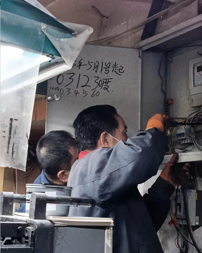 物業(yè)辦的師傅們帶上工具,三人一組開始新一輪的排查工作,檢查每一個商戶家電表的狀況,螺絲是否有松動,接線是否規(guī)范,是否需要整改,做到家家都安全,戶戶都放心,為了大家安全,為了市場繁榮,物業(yè)辦、市場辦工作人員都在全力以赴地工作著,也許語言有些生硬,也許表情有些僵硬,但對商戶的愛是一分都沒有減少。