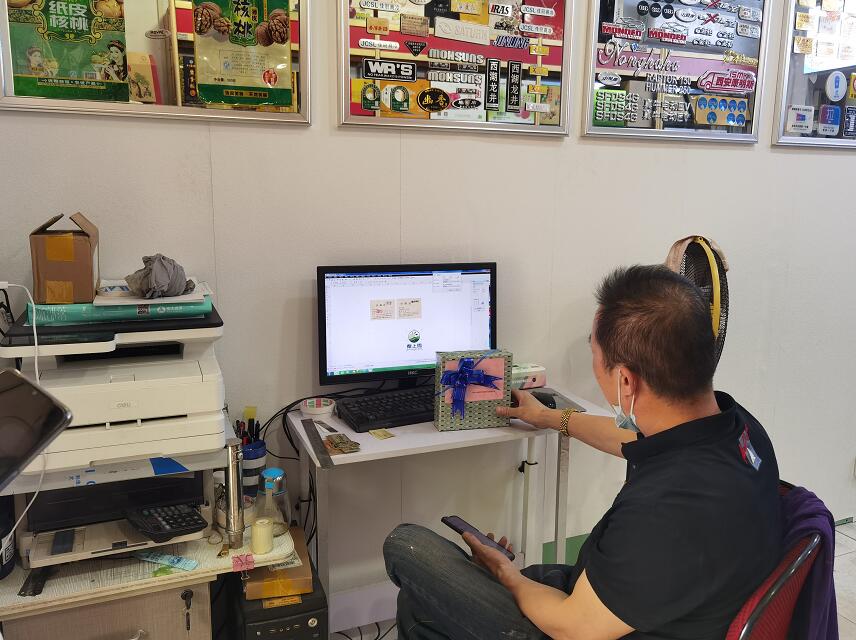 他們的設(shè)計(jì)部就在大觀園彩印市場北排:1054-71號,當(dāng)你真到這個地方的時候,你會被他們墻上和展架上放的眾多不同的紙箱包裝盒震撼住,一排排一列列,大大小小不同形狀不同色彩的高精品包裝盒讓客戶有充足的選擇余地。