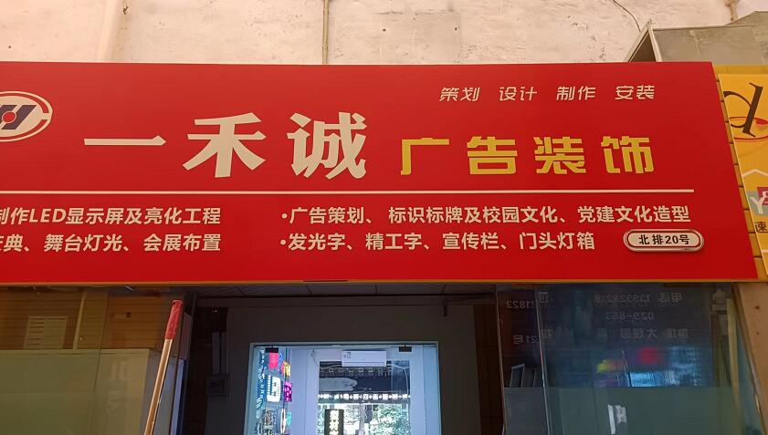西安一禾誠廣告裝飾部主營業(yè)務(wù)有LED顯示屏及亮化工程,舞臺燈光、會展布置;還有廣告策劃、標(biāo)識標(biāo)牌、發(fā)光字、凈工字、門頭燈箱的制作等,是集策劃、設(shè)計、制作、安裝為一體的綜合性廣告部。