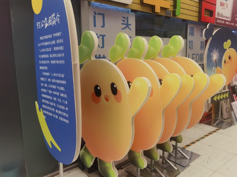 有黃色的星星展板,當(dāng)你舉起來的時候暖暖的色彩立刻就能讓你身處柔和的氛圍中,還有這小黃鴨的卡通展板,讓你如臨童話的世界,有趣的同時,還可以向消費者傳達(dá)這樣一個信號:我們的公益活動希望每個人都能開心參與。