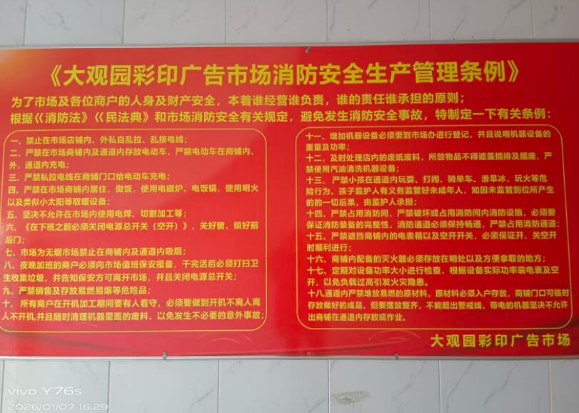 位于蓮湖區(qū)興中路的大觀園彩印標(biāo)牌市場是一個以廣告設(shè)計,制作,印刷安裝為一體的綜合性商圈,成立已有十多年。經(jīng)營場地約6千平米,房屋300間,現(xiàn)有商戶約200家。廣告制作設(shè)計品類眾多,加工制造機(jī)器設(shè)備更是樣樣齊全,客戶流量在印刷界也是小有名氣,西北地區(qū)的不少商戶也都慕名前來洽談合作。
