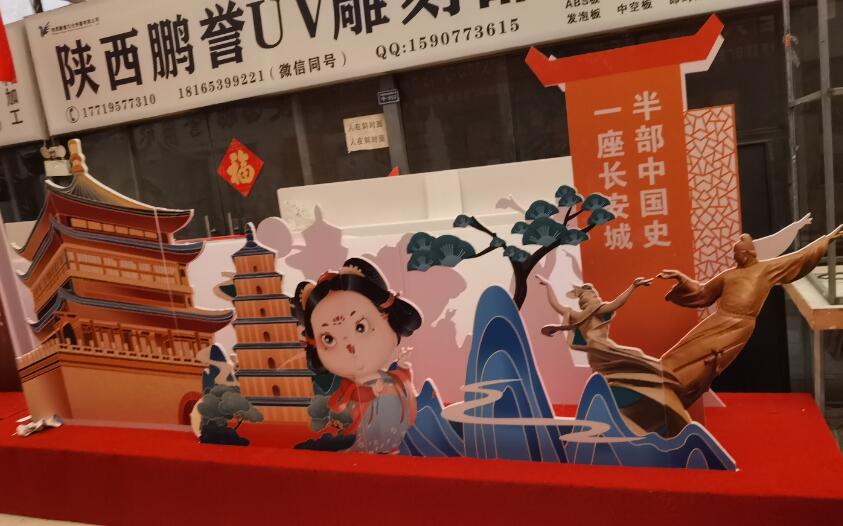 陜西鵬譽-欣藝廣告金治國金老板家,喜迎新年造型大訂單,從早到晚都在加班細致的設計制作著屬于古城的文化展板,一塊塊精致色彩艷麗的廣告宣傳展板帶你一起走進三秦大地,半部中國史、一座長安城,大雁塔、兵馬俑、還有黃鶴樓、天安門也來了,趕快都仔細地觀賞一下吧!