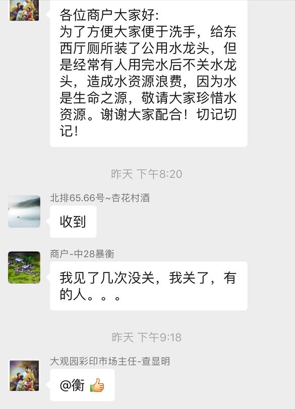 商戶們,用我們的舉手之勞,換來一方凈土、一片藍天,讓節(jié)約用水的綠色情懷填滿我們的心房!