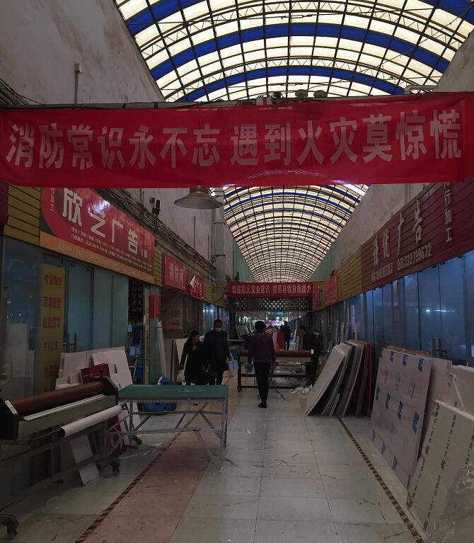 市場永遠(yuǎn)把消防安全放在第一位,也監(jiān)督商戶時時刻刻記著安全的重要性,市場內(nèi)到處掛著消防安全條幅,要求商戶每家準(zhǔn)備2個合格的滅火器排放在便于拿取的位置,禁止使用小太陽或功率大的電器,廢棄的材料盡快處理禁止堆放在室內(nèi)。