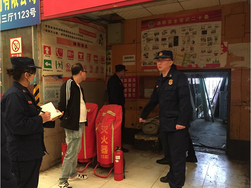 檢查過程中,對市場消防間滅火器仔細(xì)檢查了檢測日期、壓力等問題,消防栓、是否完好無損,水的壓力是否能夠達(dá)到標(biāo)準(zhǔn)。
