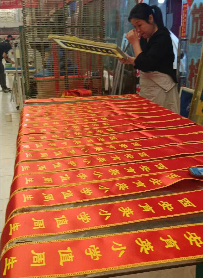 隨著金秋九月收獲的季節(jié),我們瀑布文化工廠店近幾天可謂是熱鬧非凡,店里色彩斑斕,五顏六色,客商高興,我們開心,因為都是喜人的訂單,你看這一批批印制好的馬甲,錦旗、橫幅、綬帶、紅的,綠的、藍的、黃的,所有的色彩只要是想要的都可以加急印制出來。