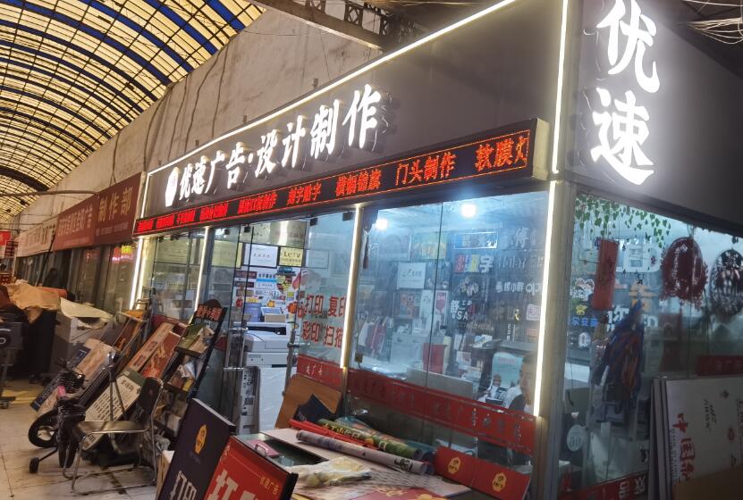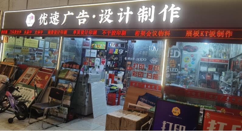 大觀園彩印廣告市場中排:000.001號優(yōu)速廣告制作部陳朋陳老板,在這個雙節(jié)的假期也沒有閑著,而是利用自己精湛的設(shè)計天才給自家更換了新的門頭,看看這漂亮的門頭字,又亮堂又炫酷,陳老板對我們說,我們搞廣告設(shè)計的,先要把自家門頭設(shè)計的漂亮了才能吸引更多的客戶來尋求合作,這絕對是行業(yè)內(nèi)的真理,王婆賣瓜也要有自己吹噓的資本,搞廣告設(shè)計的,都是直接用顯眼包讓客戶跑著來合作。